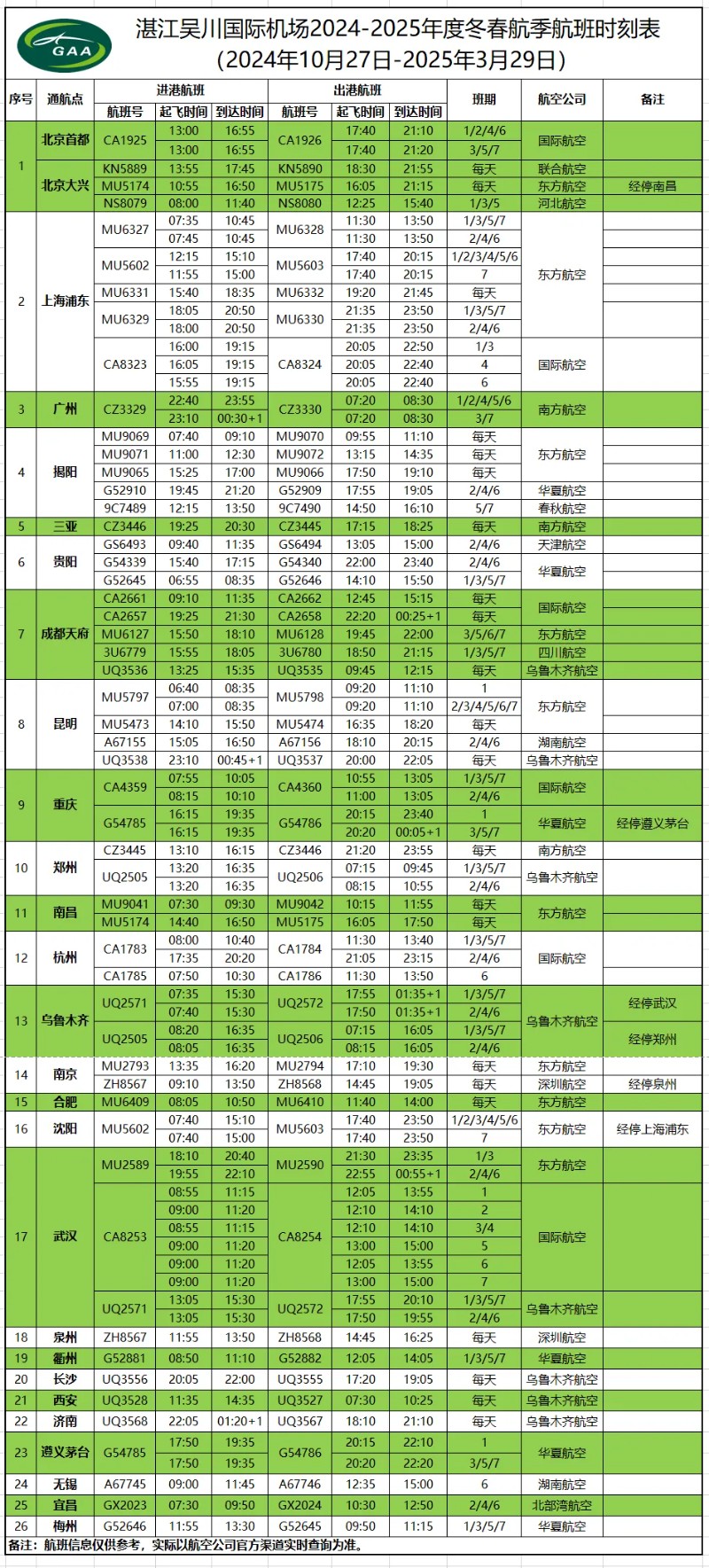 航班信息仅供参考,实际以航空公司官方渠道实时查询为准。