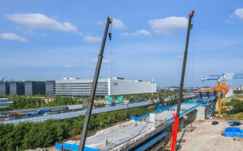 近日,位于东莞市滨海湾新区的深江高铁跨沿江高速特大桥“空中造桥”梁体浇筑顺利推进,标志着深江高铁全线首个移动模架现浇梁完成浇筑,为后续大跨度桥梁建设奠定了坚实的基础。