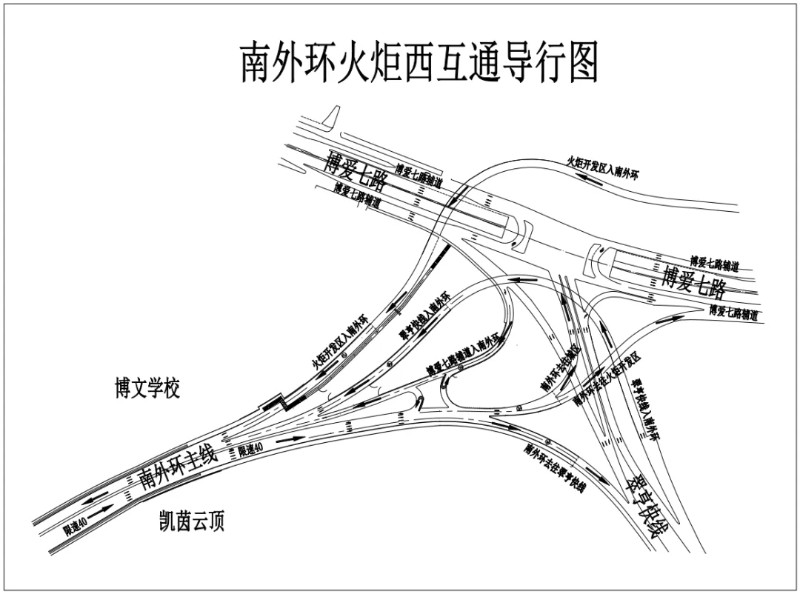 本次开放试通车路段包括火炬西互通主线及匝道,实现博爱七路、翠亨快线和南外环主线的连通,车辆可通过南外环火炬西互通去往火炬开发区、翠亨新区,同时火炬开发区和翠亨新区来车可通过火炬西互通去往城区、沙溪镇和国道G105线,极大缓解博爱路交通压力。