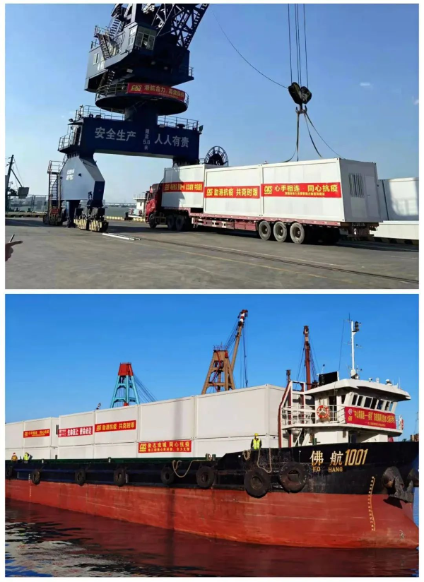 2月23日,中山黄圃港开通“中山黄圃港-香港”水路应急通道,成功承运大批量中央援港方舱活动房屋及配套设施,成为省内首个出口中央援港临时性隔离设施的港口。
