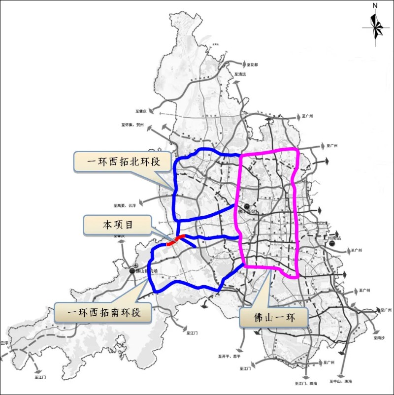 富龙西江特大桥工程沿线途经佛山市高明区荷城街道、三水区白坭镇。路线起点西接杨西大道北延线,自西向东跨越西江,与金白线交叉处设置互通立交,通过金白线接入一环西拓北环段。