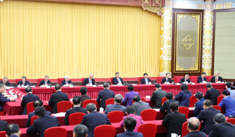在听取大家发言后,习近平发表重要讲话。他表示,很高兴同大家一起讨论,听取意见建议。他代表中共中央,向在座各位委员,并向广大民盟、民进成员和教育界人士,向广大政协委员,致以诚挚问候。