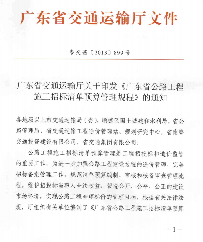 加拿大28官网 关于印发《广东省公路工程施工招标清单预算管理规程》的通知