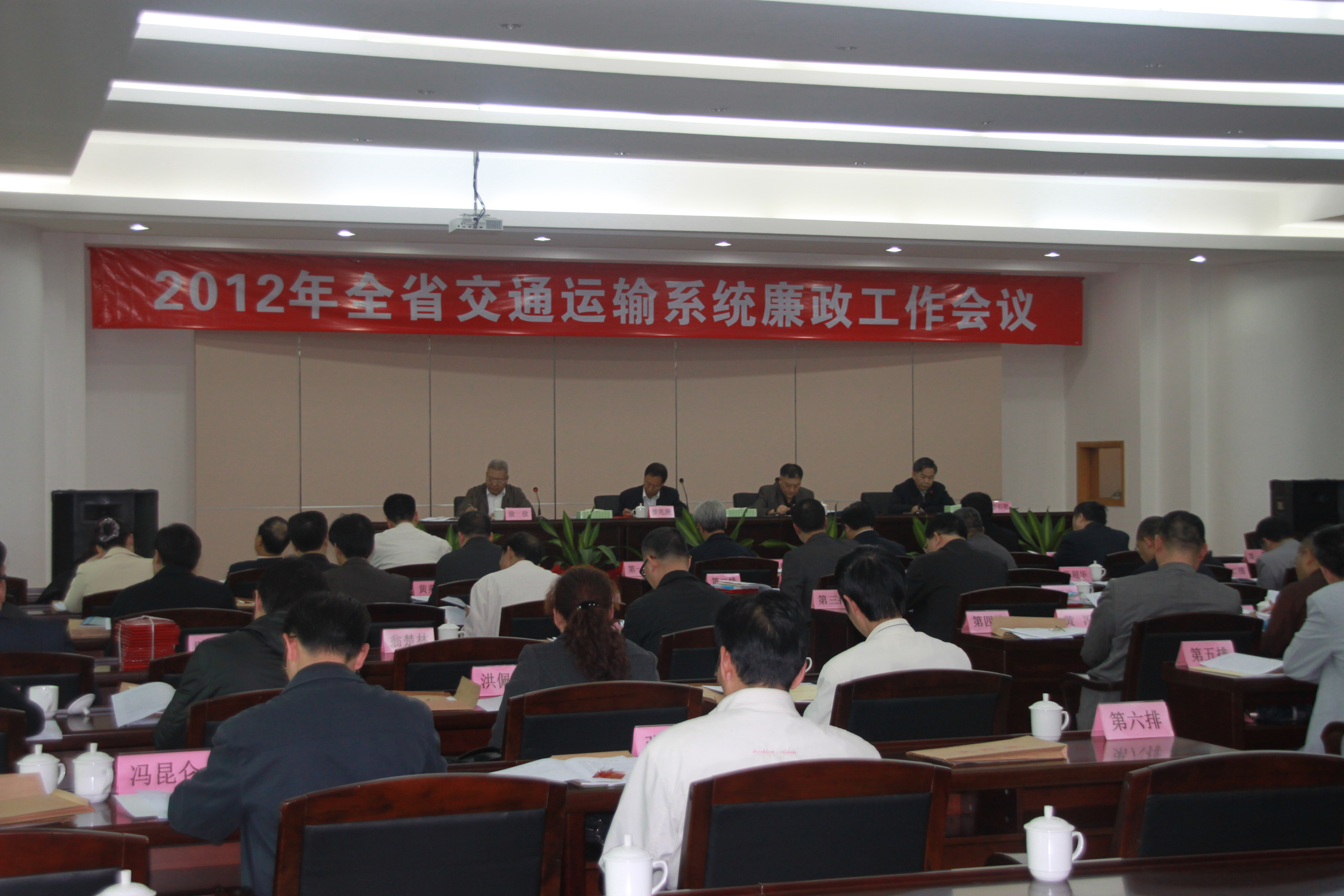 2月24日,2012年全省交通运输系统廉政工作会议在广州从化召开。厅党组书记曾兆庚同志出席会议并作了重要讲话。会议由厅党组成员、副厅长徐欣同志主持。厅党组成员、驻厅纪检组组长李石稳同志代表厅党组作了题为《狠抓监督检查,确保政令畅通,为全省交通运输科学发展提供坚强的纪律保证》的工作报告,省纪委三室主任王军耀应邀出席会议并作了讲话。