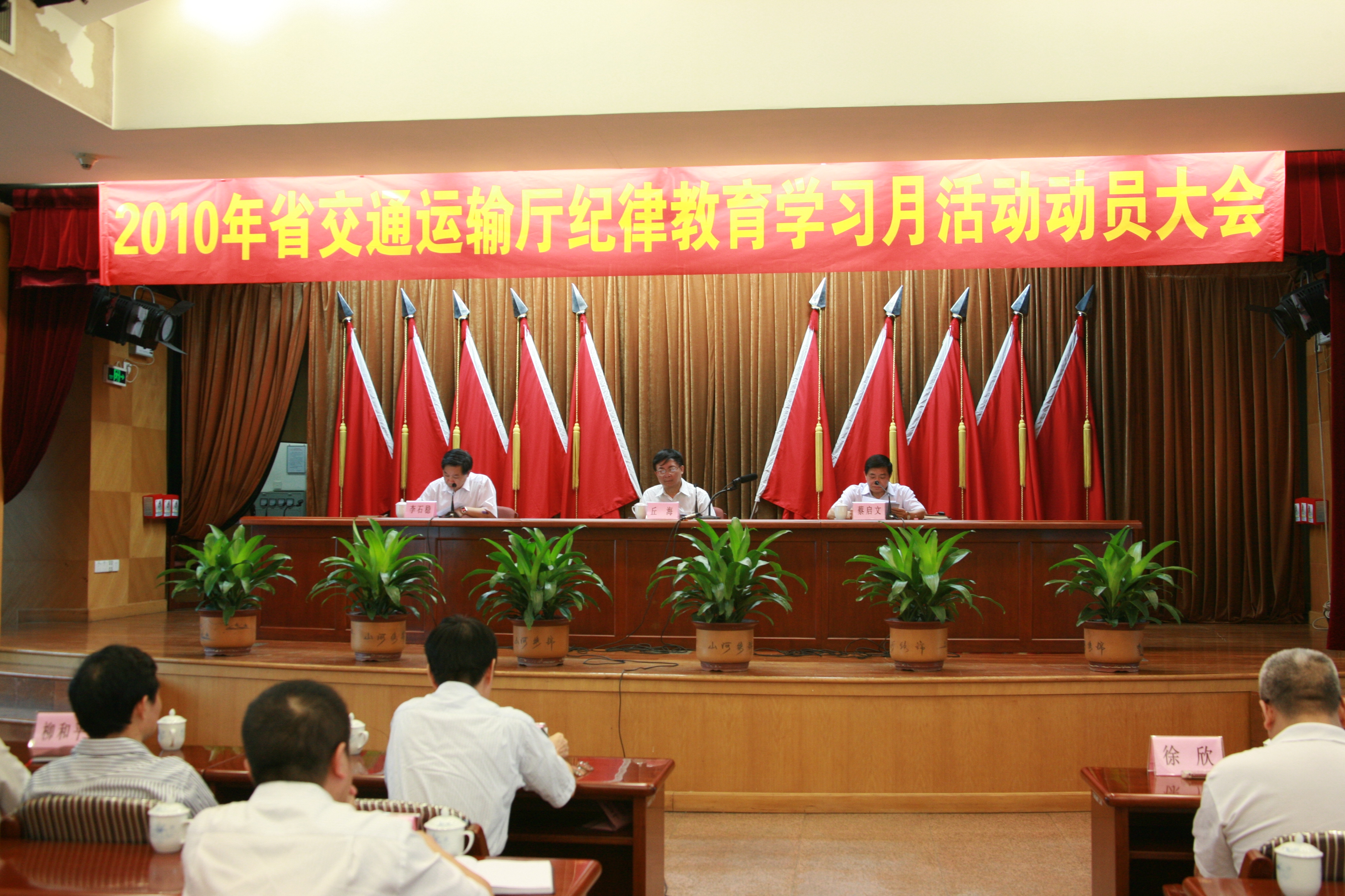 纪律教育学习月活动动员大会在厅机关31楼大礼堂召开。会议以围绕“加强制度教育,构筑拒腐防线”为主题,省纪委副书记丘海同志莅临大会作辅导报告,副厅长蔡启文同志作活动动员讲话,驻厅纪检组长李石稳同志主持会议。其他厅领导,机关各处(室)、综合规划研究中心、厅档案信息中心、省交通工程造价站全体党员、干部职工,以及厅直属其他单位的班子成员共200多人参加了会议。
