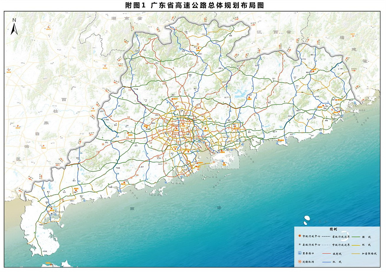 《广东省高速公路网规划(2019-2035)》的布局方案如下图所示: