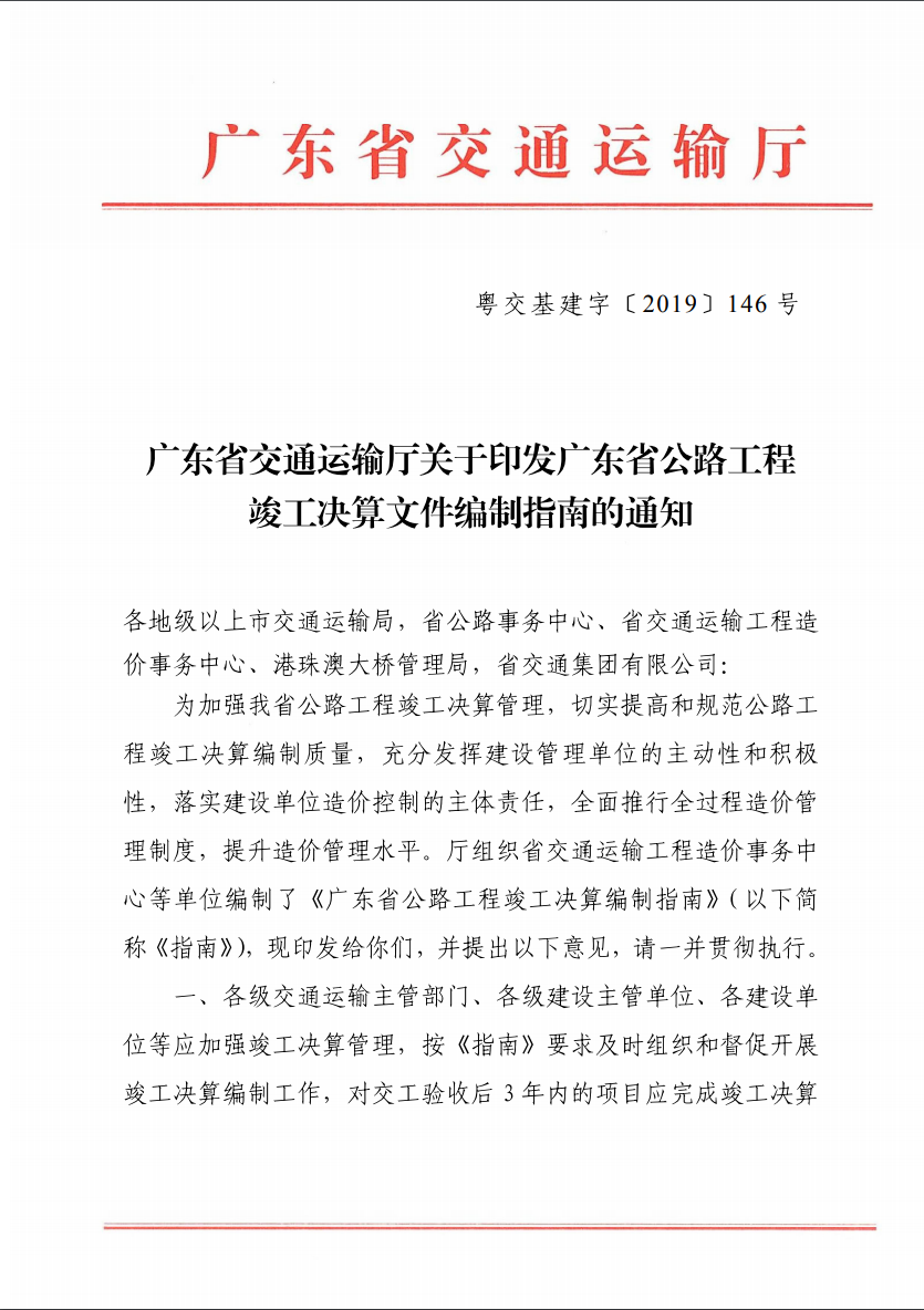 关于印发广东省公路工程竣工决算编制指南的通知