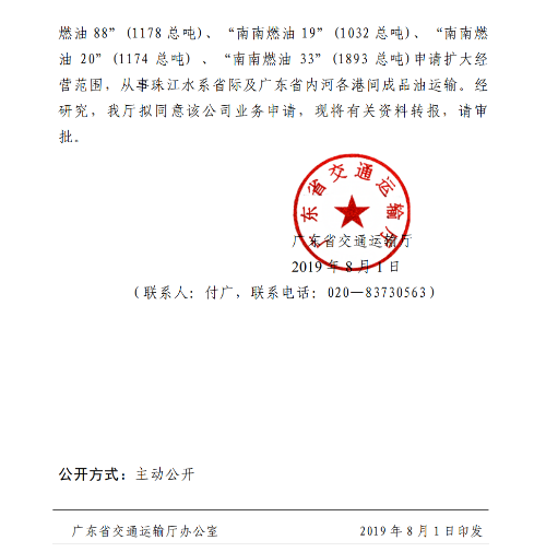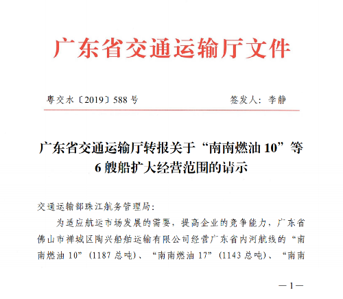 加拿大28官网 转报关于“南南燃油10”等6艘船扩大经营范围的请示