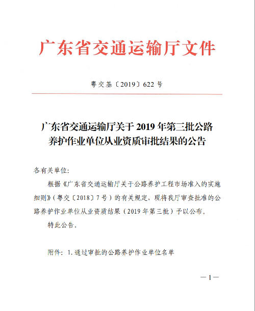 加拿大28官网 关于2019年第三批公路养护作业单位从业资质审批结果的公告