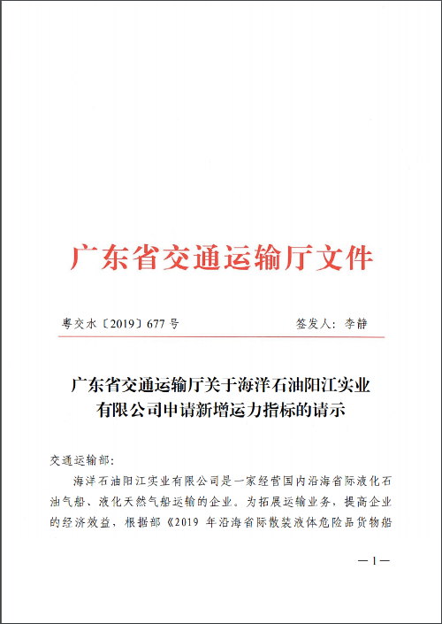 加拿大28官网 关于海洋石油阳江实业有限公司申请新增运力指标的请示.pdf