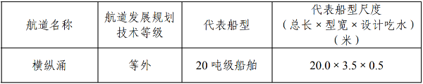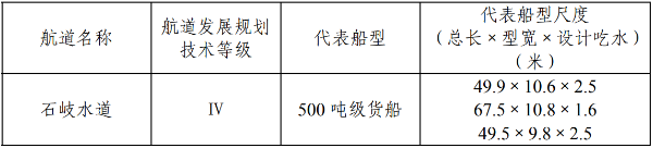 (一)代表船型基本同意《中山至开平高速公路中山段工程线路调整项目(岐江河特大桥和横门互通)航道通航条件影响评价报告》(以下简称《航评报告》)论证采用的工程所处河段的航道发展规划技术等级和代表船型,详见表1。表1 工程所处航道代表船型
