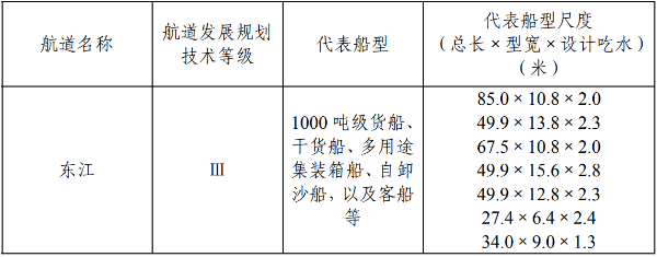 (一)代表船型根据《广东省航道发展规划(2020-2035年)》,《惠州湾高速公路跨东江桥梁工程航道通航条件影响评价报告》《惠州湾高速公路跨西枝江桥梁工程航道通航条件影响评价报告》(以下统称《航评报告》)论证选用的代表船型合理,详见表1。