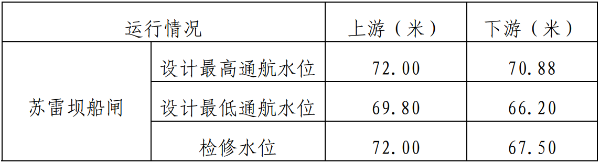 苏雷坝船闸日运行时间 8 小时,每天 9:00-17:00。如确有必 要可根据船舶实际过闸需求延长运行时间。