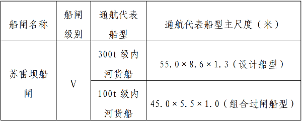 表2 船闸通航代表船型标准