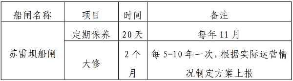 (四)船闸养护停航时间安排