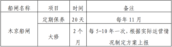 (四)船闸养护停航时间安排