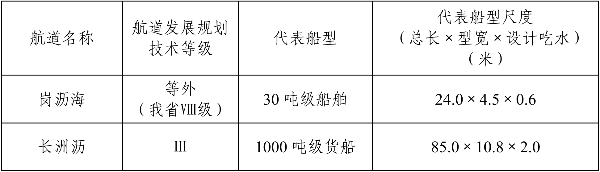 表1 拟建线路所处航道代表船型