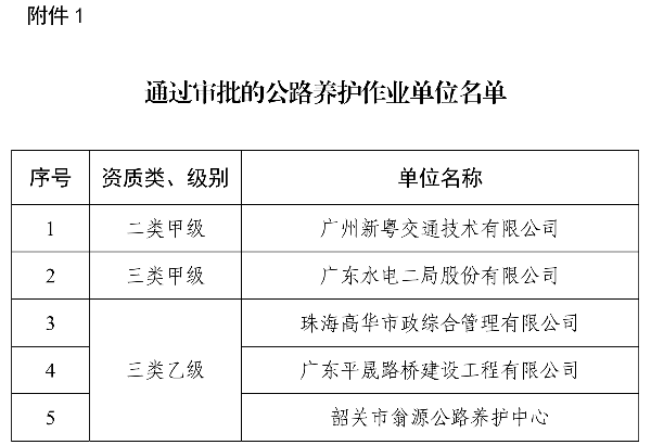附件:1.通过审批的公路养护作业单位名单2.未通过审批的公路养护作业单位名单