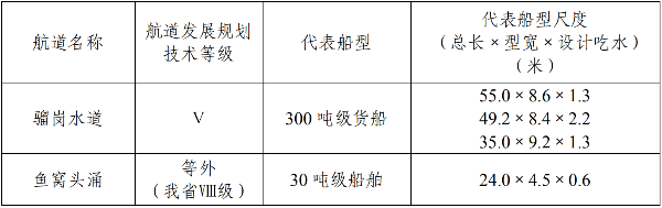 (一)代表船型根据《广东省航道发展规划(2020-2035年)》及其他相关文件,《南沙黄阁水厂第二出厂管道(黄阁水厂一期配套出水主管网)工程(第一阶段)穿越骝岗水道、鱼窝头涌航道通航条件影响评价报告》(以下简称《航评报告》)论证选用的代表船型合理,详见表1。