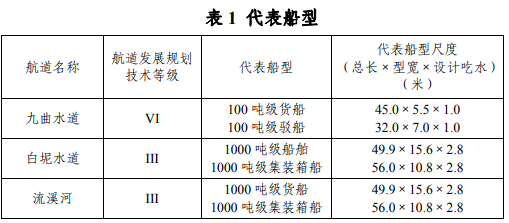 根据《广东省航道发展规划(2020-2035年)》,《广州市天然气利用工程四期工程珊瑚门站-田心调压站管线工程航道通航条件影响评价报告》(以下简称《航评报告》)论证选用的代表船型合理,详见表1。