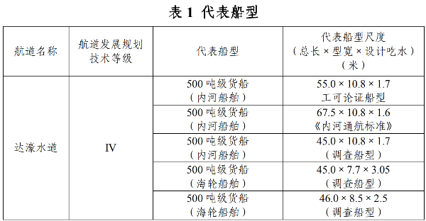 (一)代表船型根据《广东省航道发展规划(2020-2035年)》,《汕头勒门海上风电接入系统工程跨越达濠水道航道通航条件影响评价报告》(以下简称《航评报告》)论证选用的代表船型合理,详见表1。