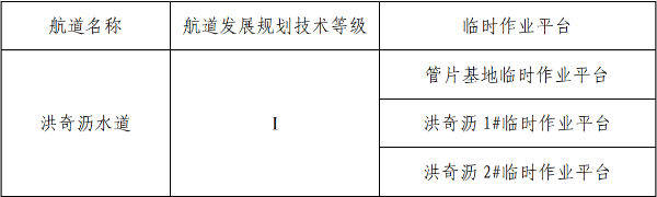 根据《广东省航道发展规划(2020-2035年)》,《深江铁路施工临时作业平台工程航道通航条件影响评价报告》(以下简称《航评报告》)论证采用的工程所处河段的航道发展规划技术等级合理,详见表2。