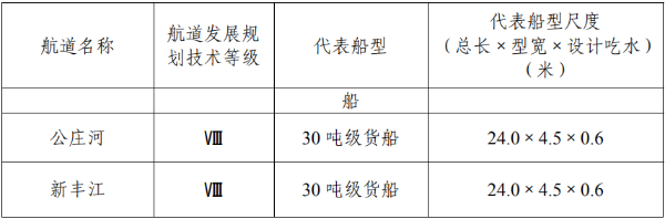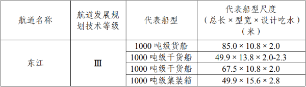 (一)代表船型基本同意《长春至深圳国家高速公路河源热水至惠州平南段改扩建工程航道通航条件影响评价》(以下统称《航评报告》)论证采用的工程所处河段的航道发展规划技术等级和代表船型,详见表2。
