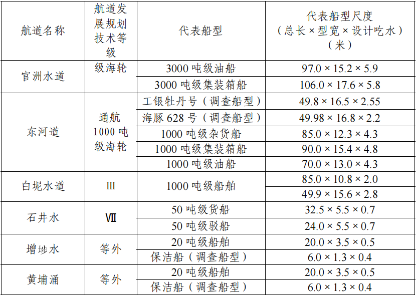 根据《广东省航道发展规划(2020-2035年)》及其他相关文件,《广州市城市轨道交通十二号线工程航道通航条件影响评价报告》(以下简称《航评报告》)论证选用的代表船型合理,详见表2。