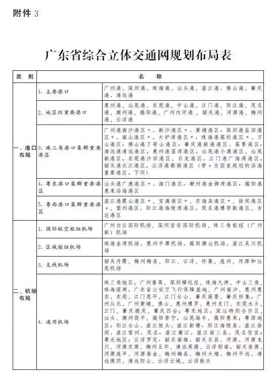 3.广东省综合立体交通网规划布局表