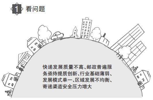 二是突出问题导向。《规划》坚持问题导向,从用户服务需求、产业发展规律、可持续发展等方面,梳理出邮政业发展面临的突出问题和短板,包括:快递发展质量不高、邮政普遍服务亟待提质创新、行业基础薄弱、发展模式单一、区域发展不均衡、寄递渠道安全压力增大等。针对这些核心问题,聚焦重点、综合施策、精准发力,《规划》提出了一系列解决问题、化解矛盾、补齐短板的任务措施和建设工程。比如:引导企业从价格竞争向服务品质竞争转变,实施品牌和差异化发展战略;推动普遍服务的快捷化发展,改进邮件收寄和投递方式,提升服务水平;推进分拨中心、集散枢纽建设;着力服务先进制造业、跨境电商和现代农业,发展工厂快递、越洋快递和农商快递;支持西部地区改善基础设施,提升西部地区服务网络的均衡度和稳定性;加强安全监管,全面落实收寄验视、实名收寄、过机安检三项制度。