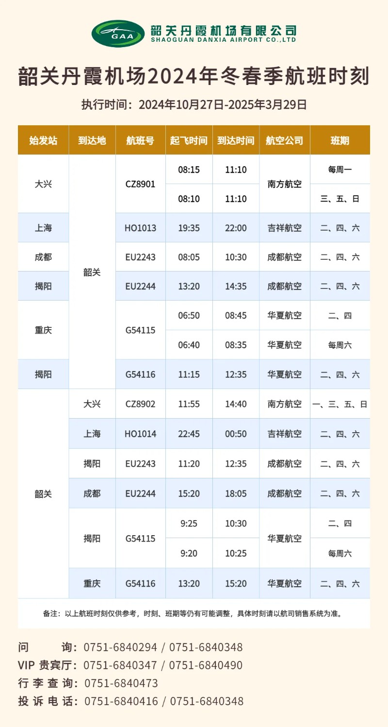 10月的航班换季如约而至,珠海机场、佛山机场、韶关丹霞机场、惠州机场、湛江吴川国际机场10月27日起将开始执行2024年冬春航季航班计划。