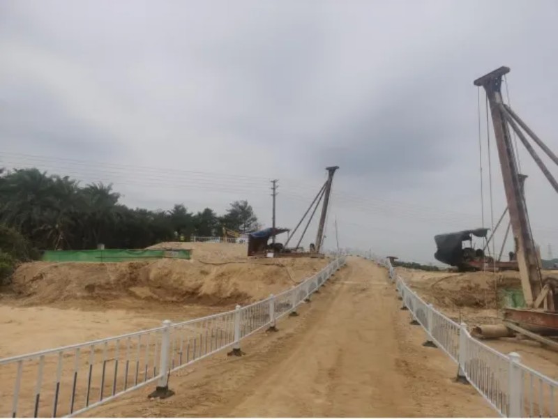 “这处高压线电压等级是多少?怎么什么安全标志和措施都没有呢?”帮扶指导组抬手指着横穿施工便道和桩基施工区域上方的高压线严肃地问道,随即指出人员及机械作业时与通电高压交流线路的安全保护距离有着明确的规定,“10kV线路保持7米以上的垂直安全距离,220kV线路保持8米以上的垂直安全距离,500kV线路保持14米以上的垂直安全距离。”针对这一情况,服务帮扶组要求项目部按照《公路水运工程临时用电技术规程》(JT/T 1499-2024),严格控制作业与高压架空线路的安全距离,并做好安全评估和安全措施,建议在作业区域设立安全限界隔离警示护栏,并设置“高压危险”等警告标志。