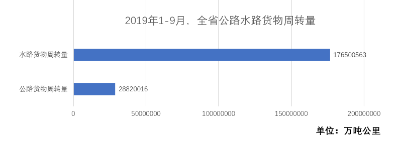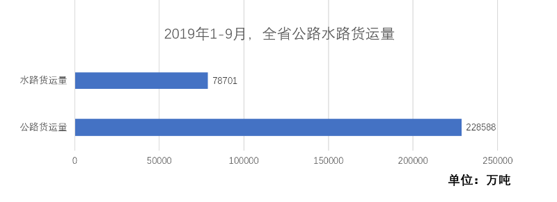 2019年1-9月,全省公路水路货运量、货物周转量分别完成307289 万吨和205320579 万吨公里,同比分别增长5.2%和增长0.8%,其中公路货运量和货物周转量分别完成228588万吨和28820016 万吨公里,同比分别增长5.0%和6.1%;水路货运量和货物周转量分别完成78701万吨和176500563万吨公里,同比分别增长5.8%和增长0.02%。全省公路水路客运量和旅客周转量分别完成77999万人和8365658万人公里,同比分别下降4.0%和2.2%;其中公路客运量和旅客周转量分别完成75996万人和8290586 万人公里,同比分别下降3.9%和2.1%;水路客运量和旅客周转量分别完成2003万人和75072万人公里,同比分别下降5.8%和12.0%。
