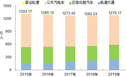 全年完成城市客运量1279.17亿人,比上年增长1.3%。其中,公共汽电车完成客运量691.76亿人,下降0.8%,其中BRT完成客运量17.47亿人,完成公共汽电车运营里程354.13亿公里,增长2.3%;轨道交通完成客运量238.78亿人,增长12.2%,完成运营车公里41.43亿车公里,增长17.5%;巡游出租汽车完成客运量347.89亿人,下降1.1%;客运轮渡完成客运量0.73亿人,下降9.0%。