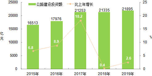 全年完成公路建设投资21895亿元,比上年增长2.6%。其中,高速公路建设完成投资11504亿元,增长15.4%;普通国省道建设完成投资4924亿元,下降10.3%;农村公路建设完成投资4663亿元,下降6.5%。