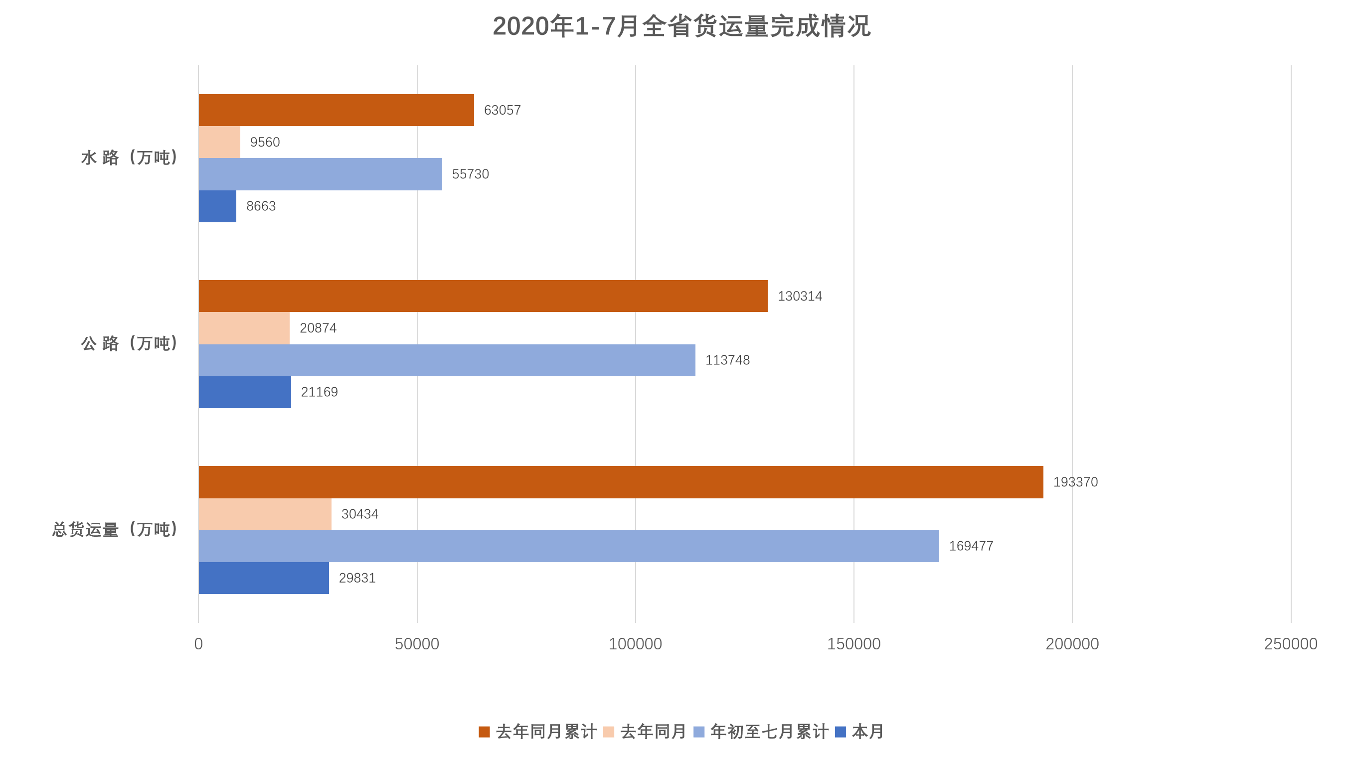 1-7月,全省公路水路货运量、货物周转量分别完成169477万吨和139685316万吨公里,同比分别下降12.4%和下降6.2%。其中,公路货运量和货物周转量分别完成113748万吨和12157352万吨公里,同比分别下降12.7%和下降10.3%;水路货运量和货物周转量分别完成55730万吨和127527964万吨公里,同比分别下降11.6%和下降5.7%。全省公路水路客运量和旅客周转量分别完成30555万人和3095466万人公里,同比分别下降49.4%和下降52.2%。按照疫情防控常态化要求,在保障群众基本出行需求的基础上,全省道路客运站场、车辆、港口码头、城市公共交通等运输组织继续加强体温监测、健康码查验等措施,严格控制客座率和拥挤度,1-7月营业性客运量较去年同期下降幅度仍较大。其中,公路客运量和旅客周转量分别完成29874万人和3073183万人公里,同比分别下降49.2%和52.1%;水路客运量和旅客周转量分别完成681万人和22283万人公里,同比分别下降55.8%和62.3%。