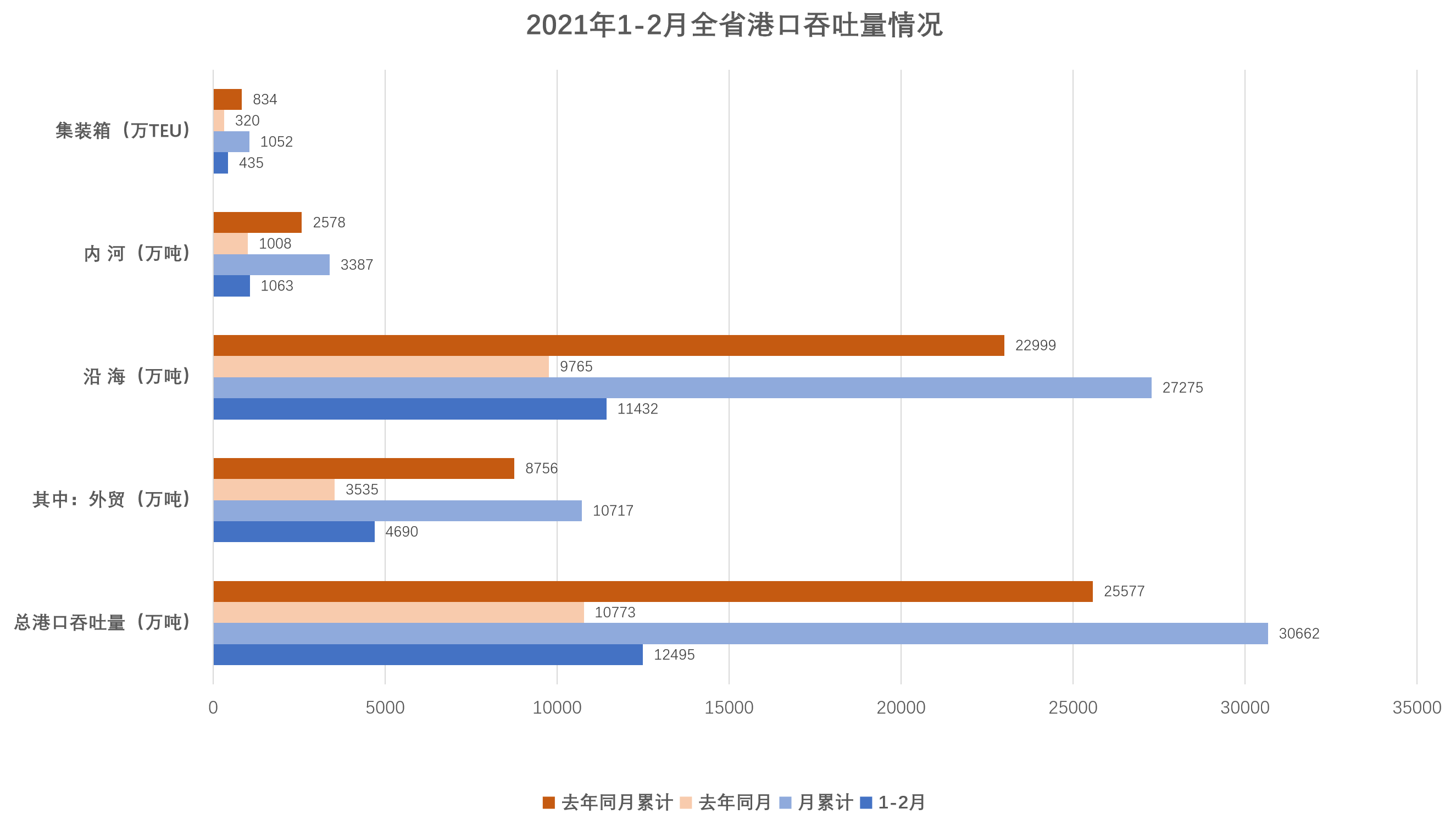 1-2月,全省完成港口货物吞吐量3.0亿吨,同比增长19.9%。其中,