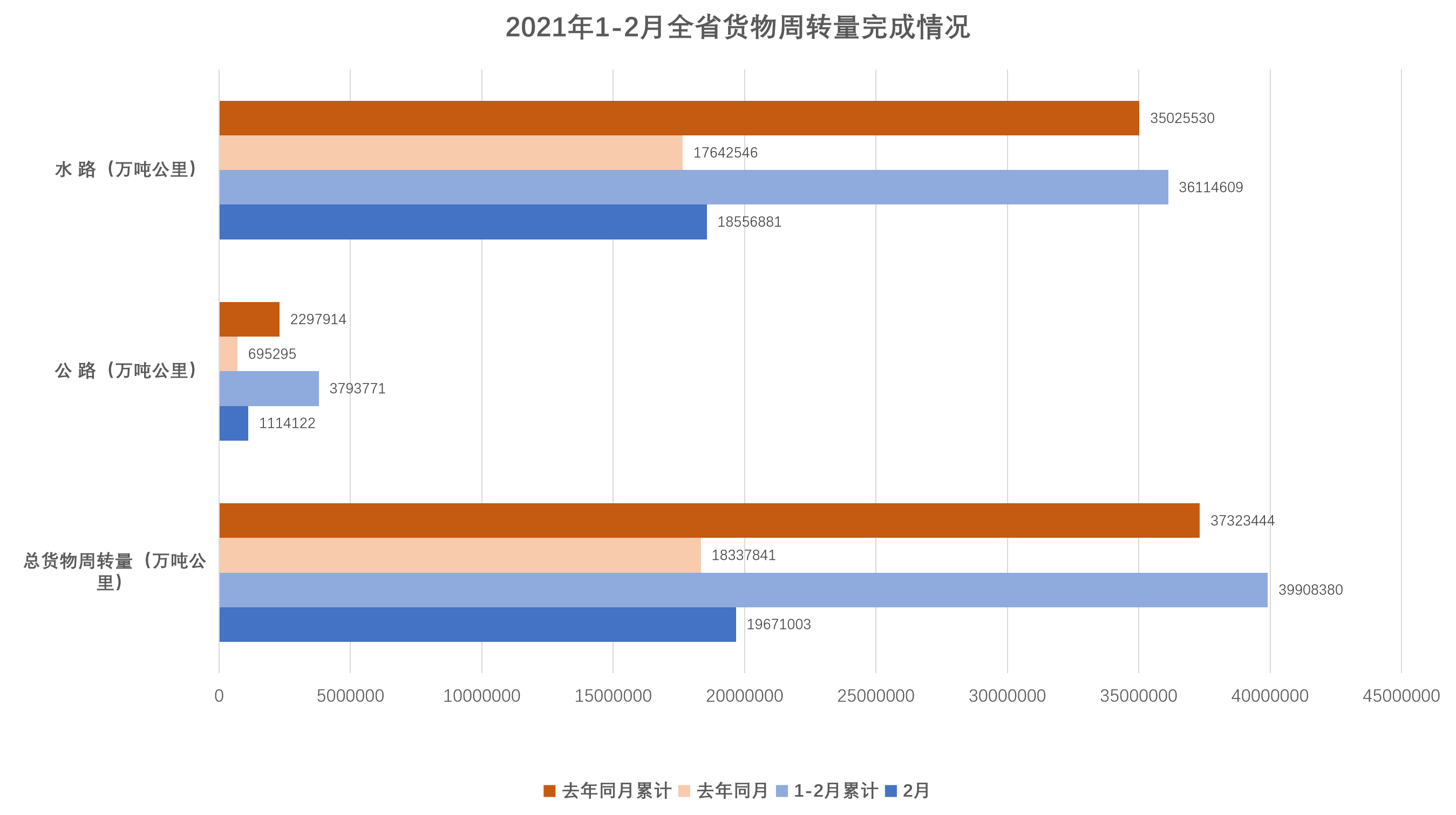 1-2月,全省完成公路水路货运量、货物周转量4.8亿吨和3991亿吨公里,同比分别增长34.3%和6.9%。其中,