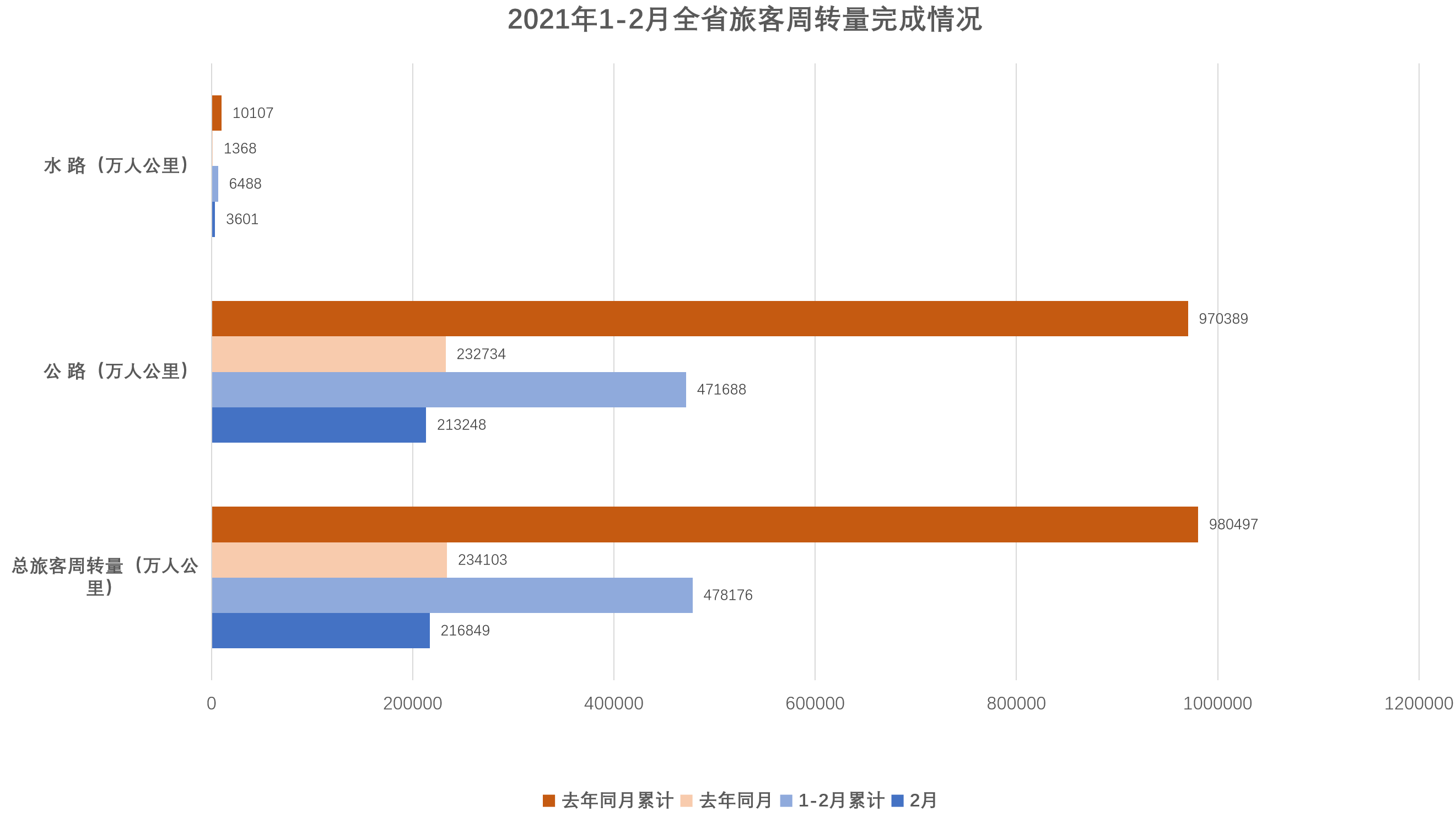 1-2月,全省完成公路水路客运量0.48亿人、旅客周转量47.8亿人公里,同比分别下降44.7%和51.2%。其中,