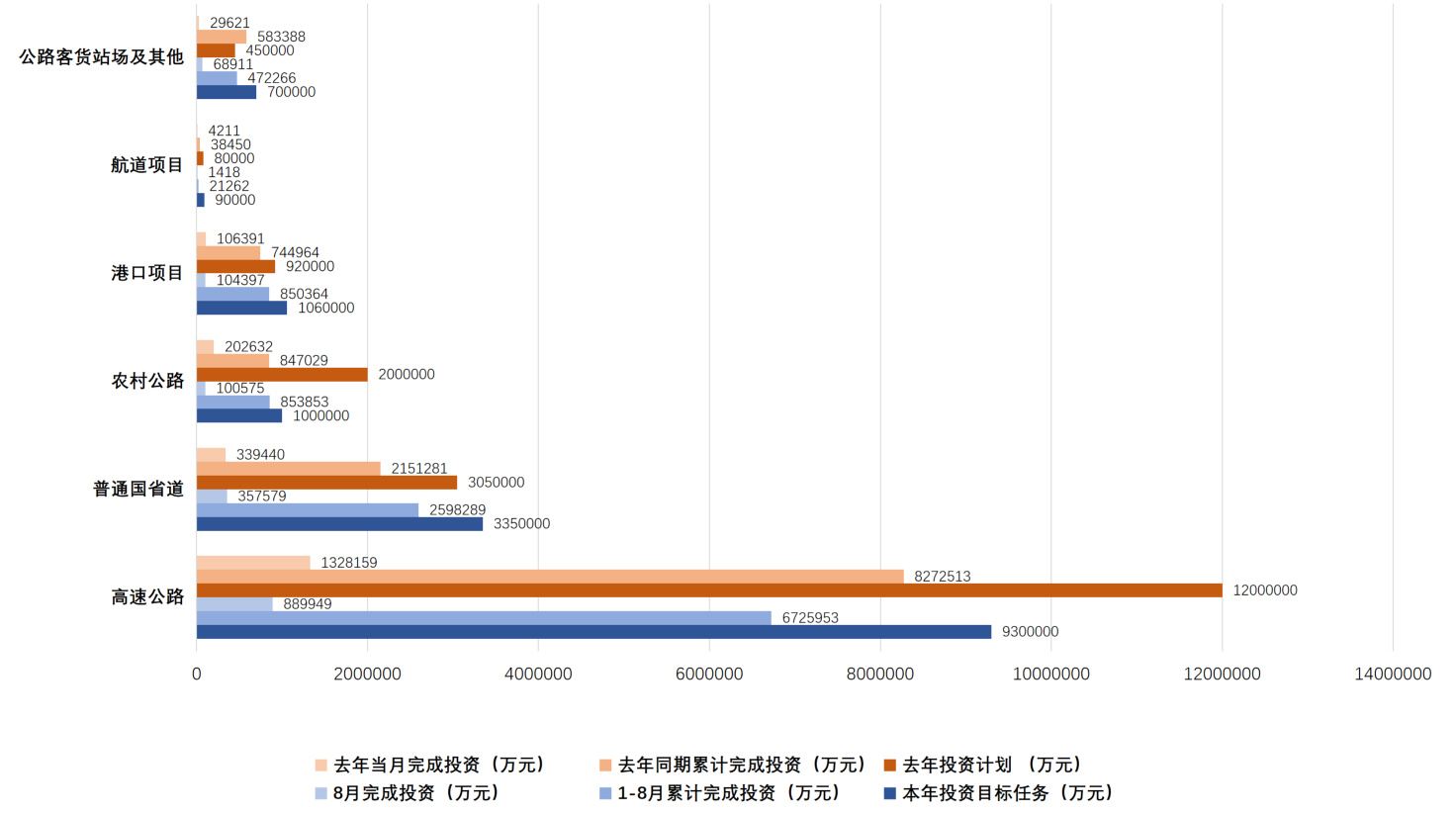 前8月,调增年度投资计划交通固定资产投资完成年计划74.3%。年中,将全年投资计划从1300亿元调增至1550亿元,并力争作出更大贡献。