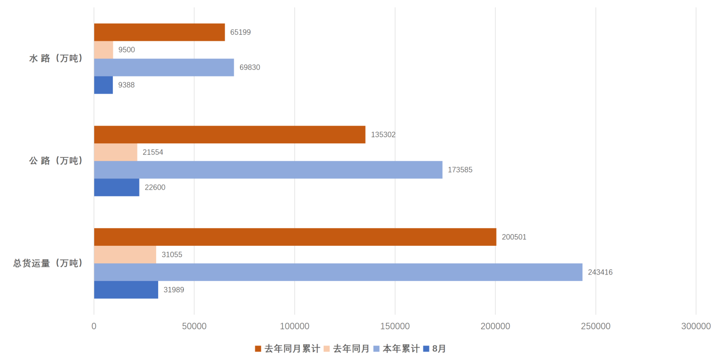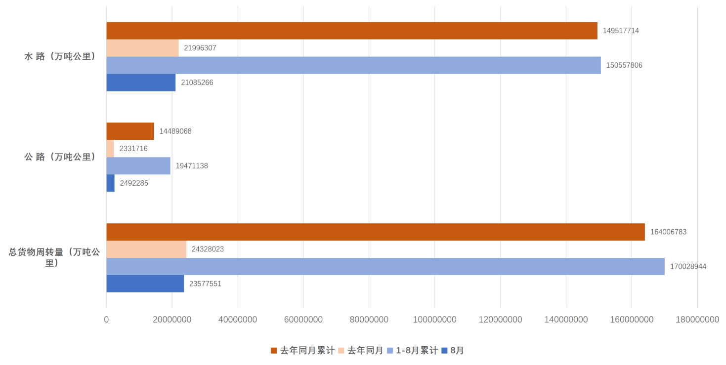 前8月,货运量保持较快增长,增长稳定性持续性较强。