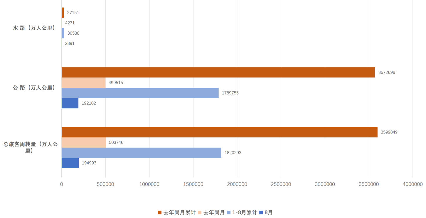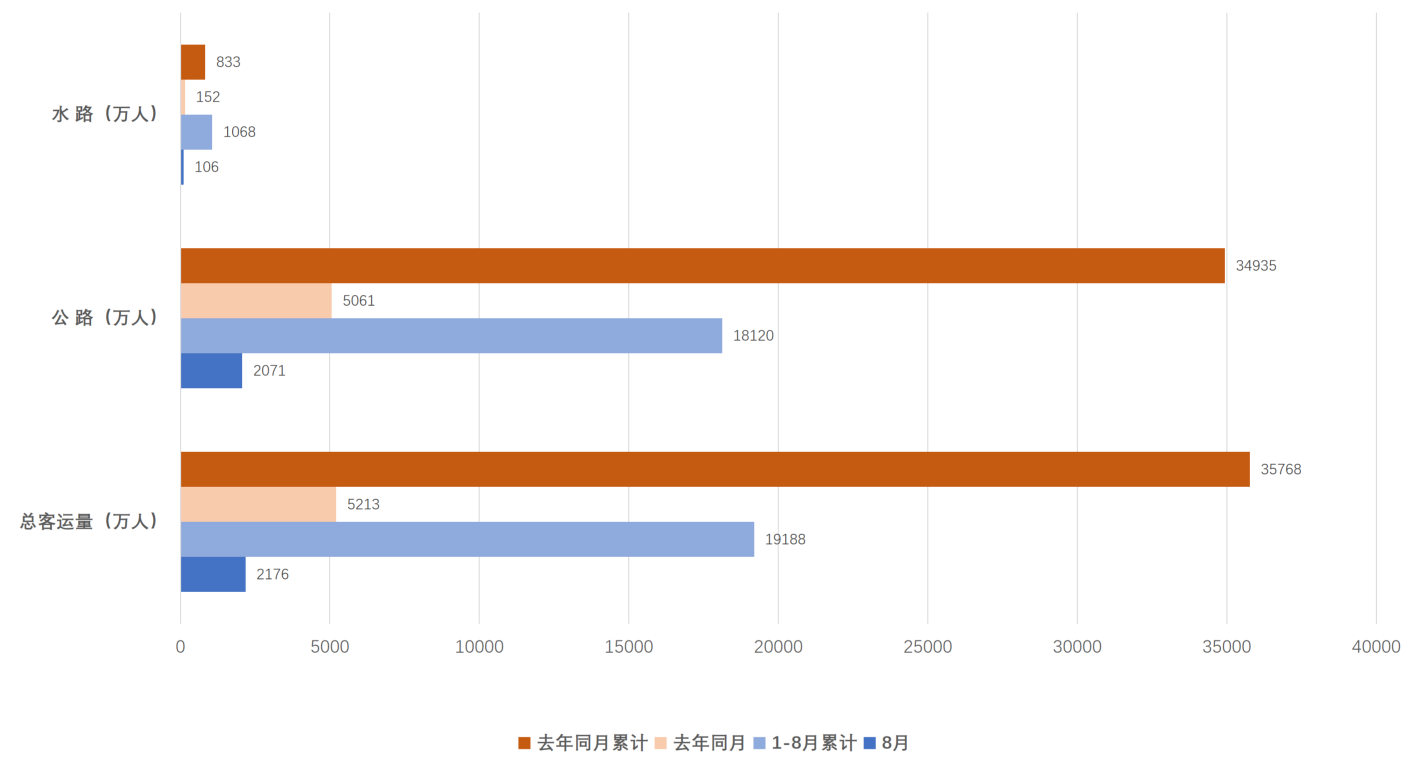 前8月,客运整体仍在恢复,水路客运持续正增长。