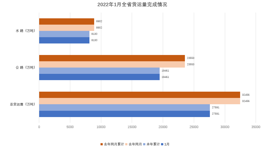 1月,全省公路水路货运量、货物周转量分别完成2.75亿吨和1949.32亿吨公里,同比分别下降15.0%和3.7%。