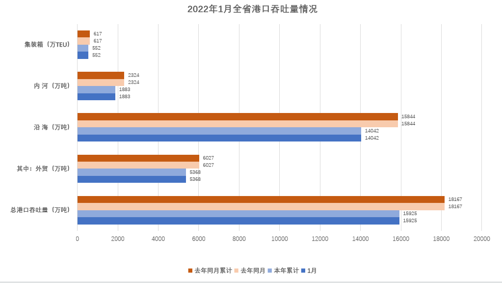 1月,港口货物吞吐量共完成1.59亿吨,同比下降12.3%。