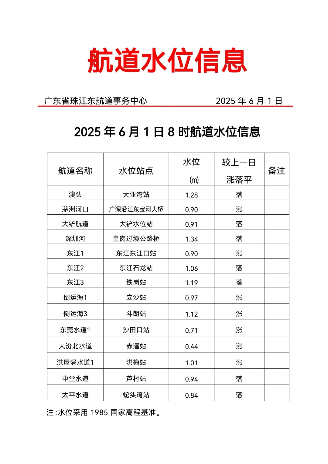 广东省珠江东航道事务中心2025年6月1日航道水位信息.jpg