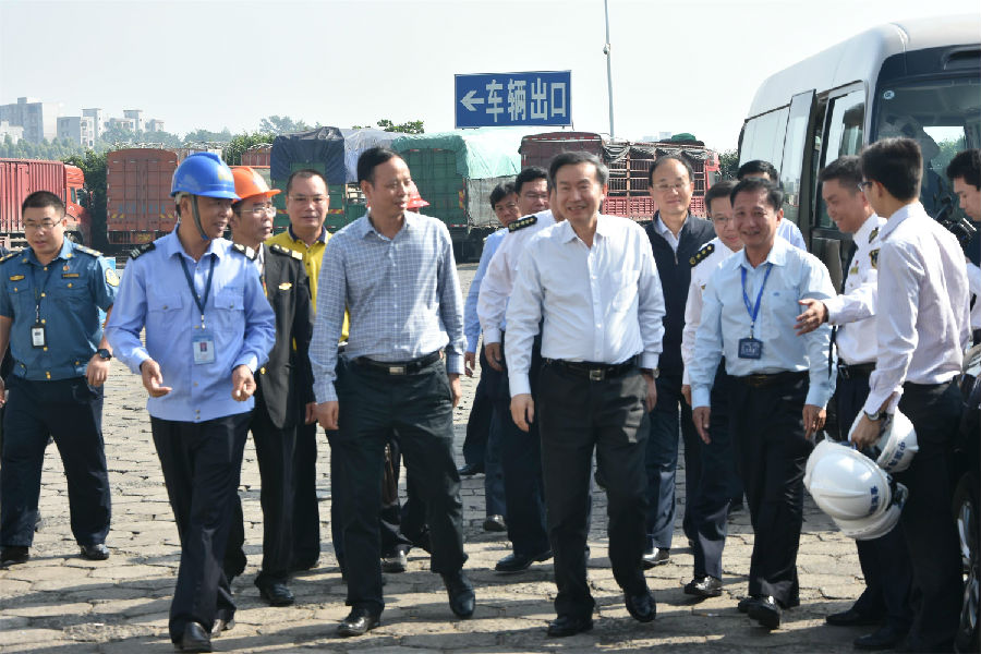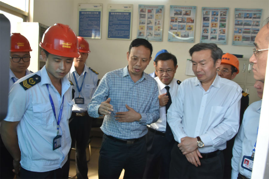 2017年11月1日上午,交通运输部党组成员、副部长何建中一行参加完中国-东盟海上搜救演习后到徐闻海安检查指导琼州海峡轮渡运输工作,湛江海事局、广东省海峡办等职能部门及港航企业主要领导陪同。
