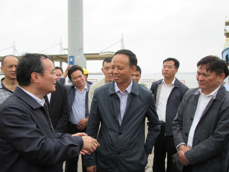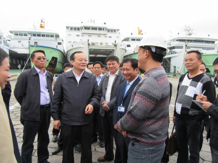随后,调研组来到海安新港进行指导检查。新港负责人刘庄董事长向袁副省长一行介绍了近年来的客运量情况,并汇报了春运工作方案。袁副省长与相关部门负责人深入交谈了解,强调要攻坚克难,提高渡海服务质量,全力以赴保障春运工作的顺利进行。调研组参观了海安新港候船室、新港泊位码头等,省交通厅水运处向袁副省长汇报了琼州海峡轮渡运输实名制工作、反恐安全等事宜。袁副省长在参观码头现场时向奋战在一线的企业员工了解汽车候船检查工作,并对在岗员工和候船司乘传达了政府的慰问。